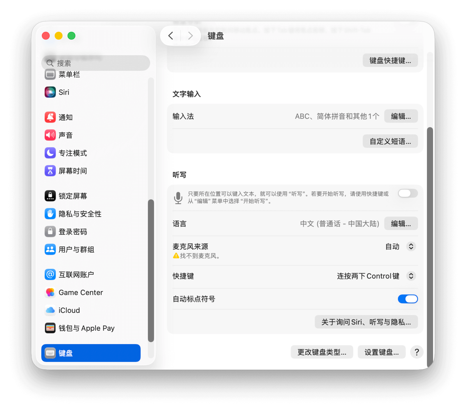 在这里开启「听写」功能后,按下指定的快捷键(默认为连按两次 Fn 键,或在旧款 Mac 上为 F5 键)即可开始语音输入。你也可以在此处自定义听写的语言和快捷键。