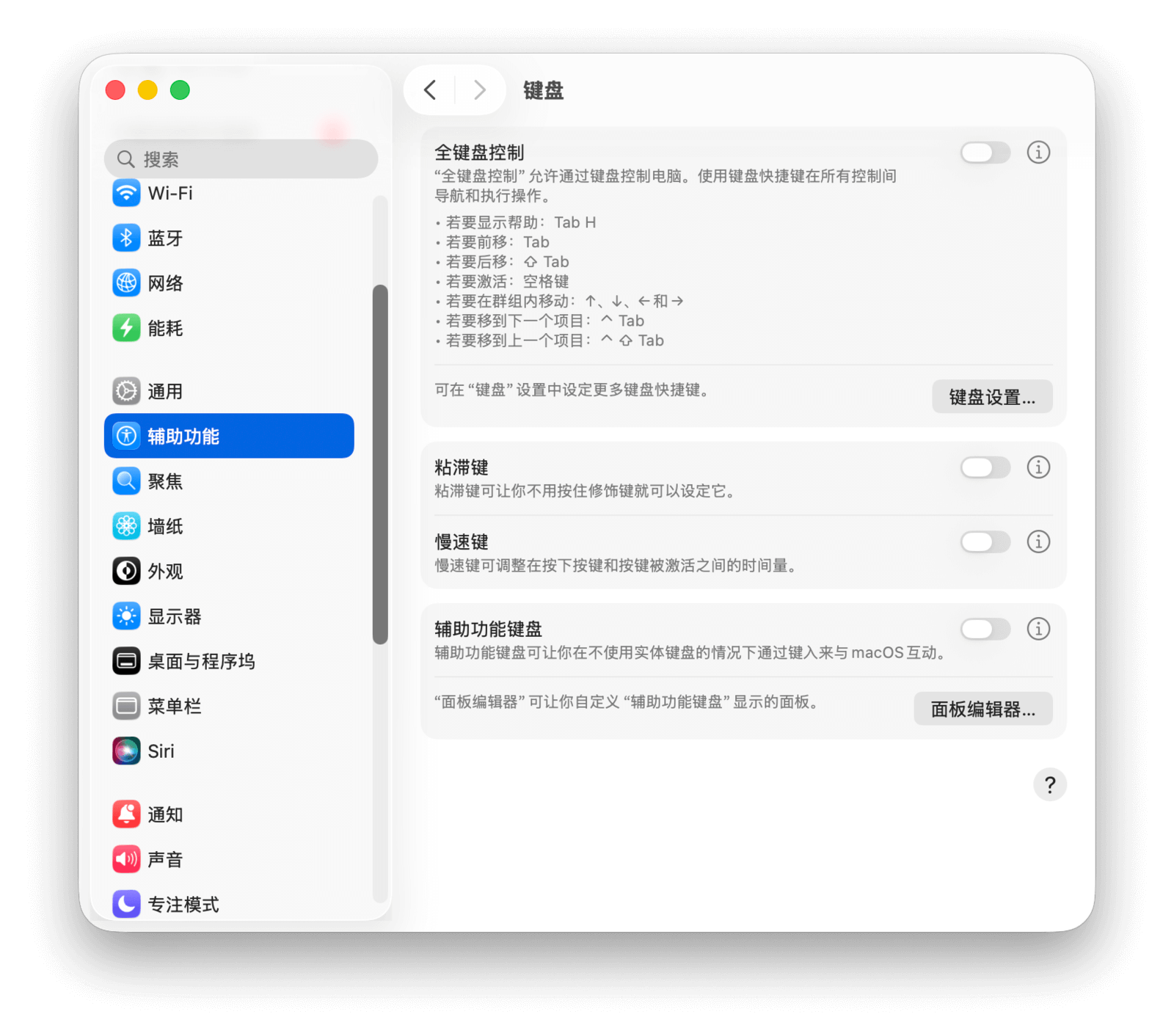 你可以在「系统设置 > 辅助功能 > 键盘」中找到并配置更多键盘相关的辅助功能。
