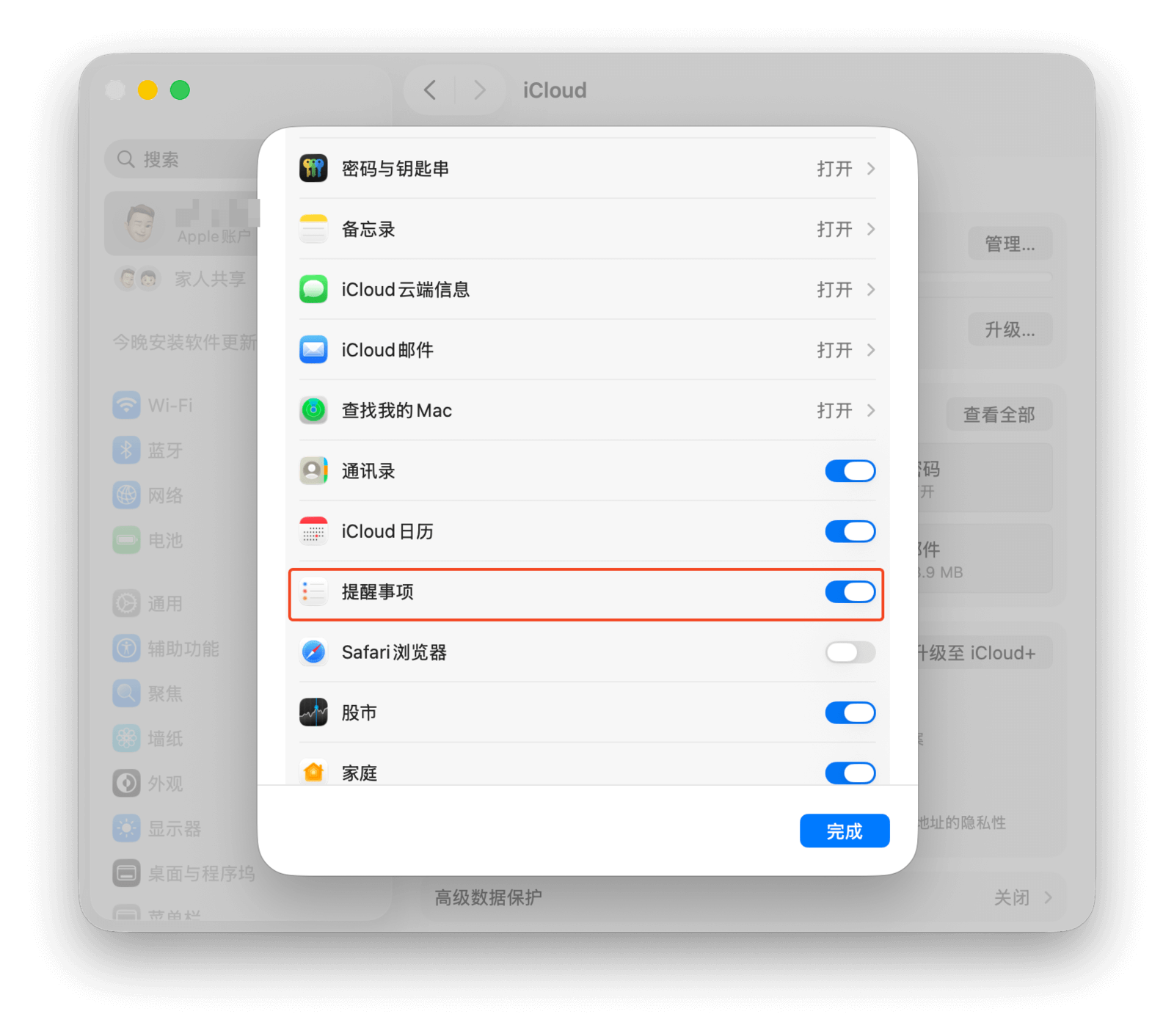 如果你有多台苹果设备,可以通过 iCloud 在不同设备间同步提醒事项。只需前往「系统设置 > Apple ID > iCloud」,确保「提醒事项」的开关已开启即可。