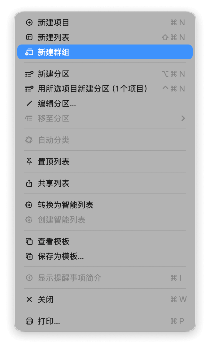 列表还可以通过「群组」来归类。选中想要归入同一分类的多个列表,然后通过菜单栏的「文件 > 新建群组」将它们收纳到一个群组中。