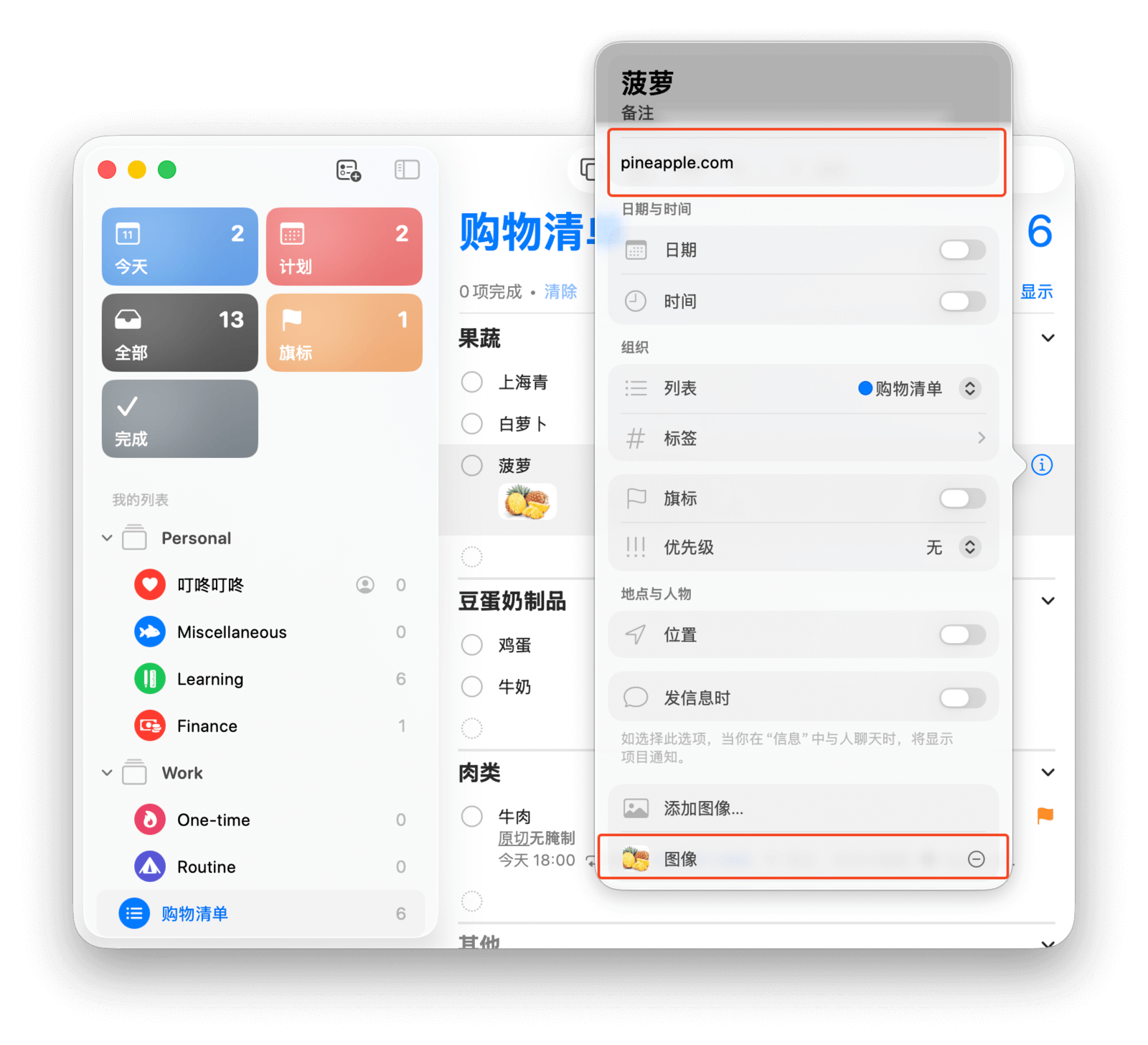 你还可以在「添加图像」处为任务附上图片,或在「URL」处填写链接,为任务补充更多相关信息。