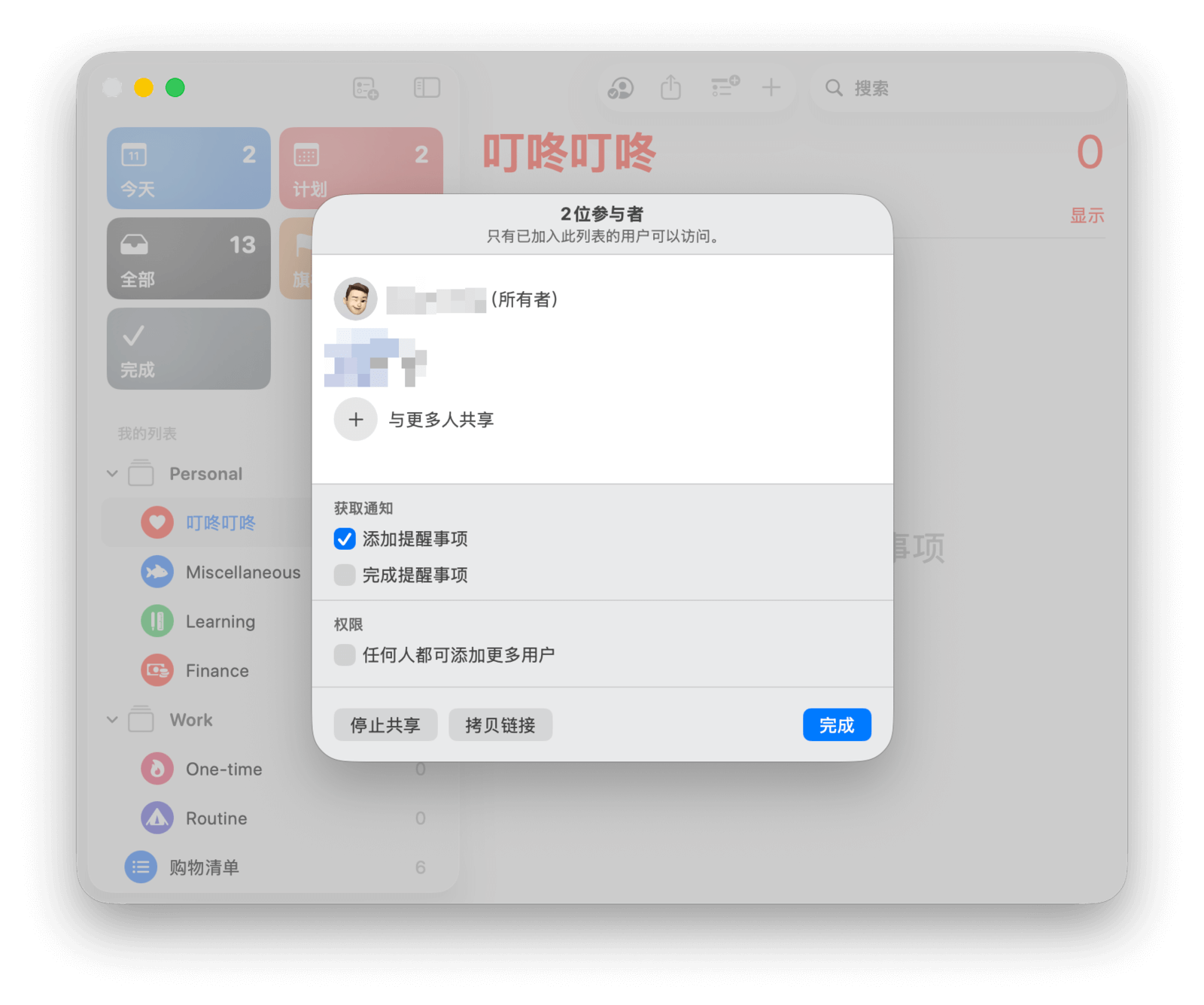 当共享列表中的成员添加或完成任务时,你还会收到相关通知。