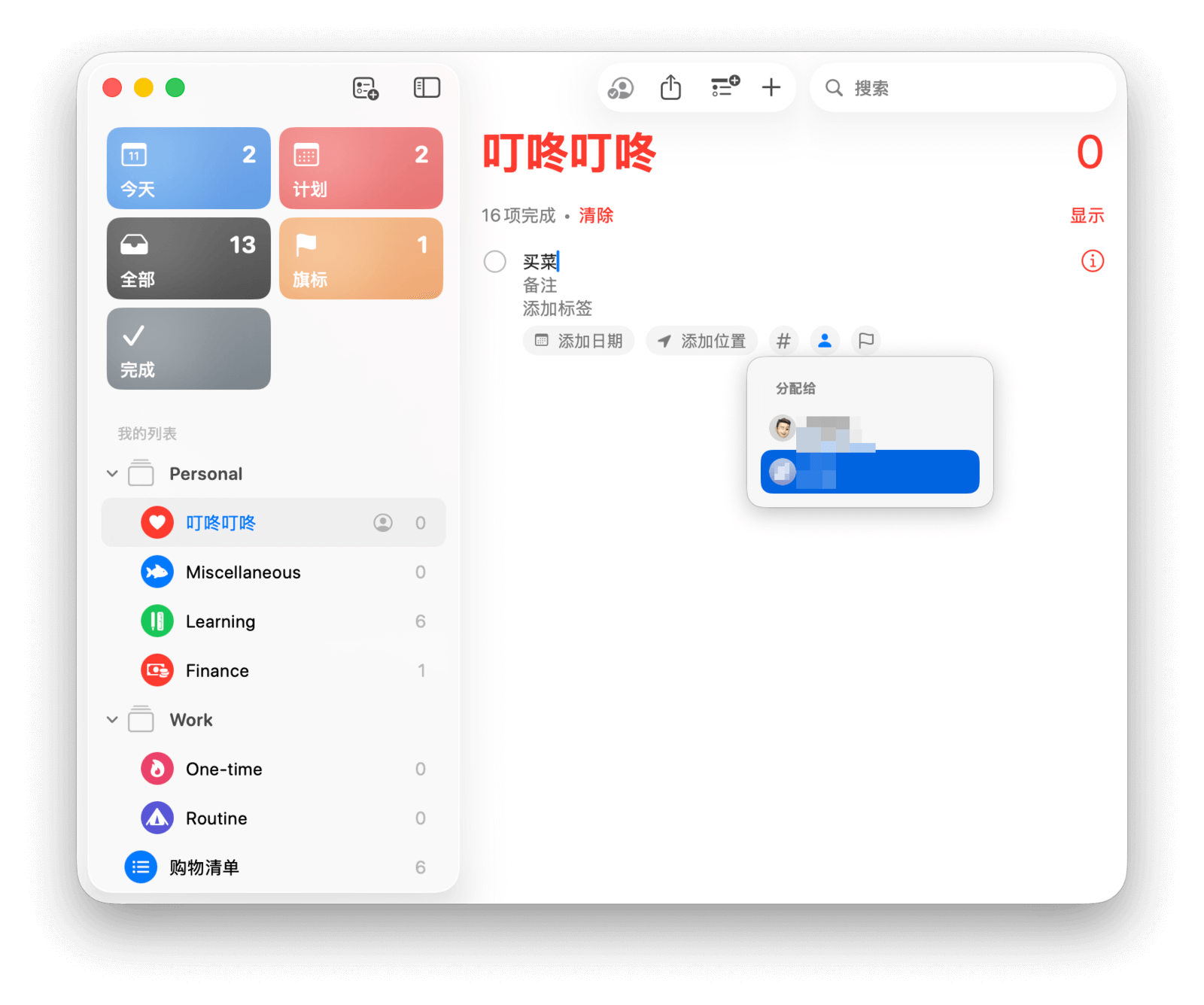 列表共享后,你还可以向协作成员分配任务。选择想要分配的任务,点击「i」图标,然后在「分配给...」一栏选择分配对象。通过分配任务,可以确保团队成员各司其职,高效协作。