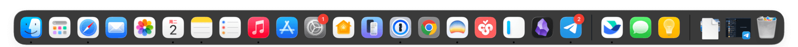 相比菜单栏,大家对程序坞应该会更熟悉,毕竟在 iOS,特别是 iPadOS 上也有它的身影。程序坞用于放置常用的 App、显示正在运行的 App,方便我们随时启动或切换。