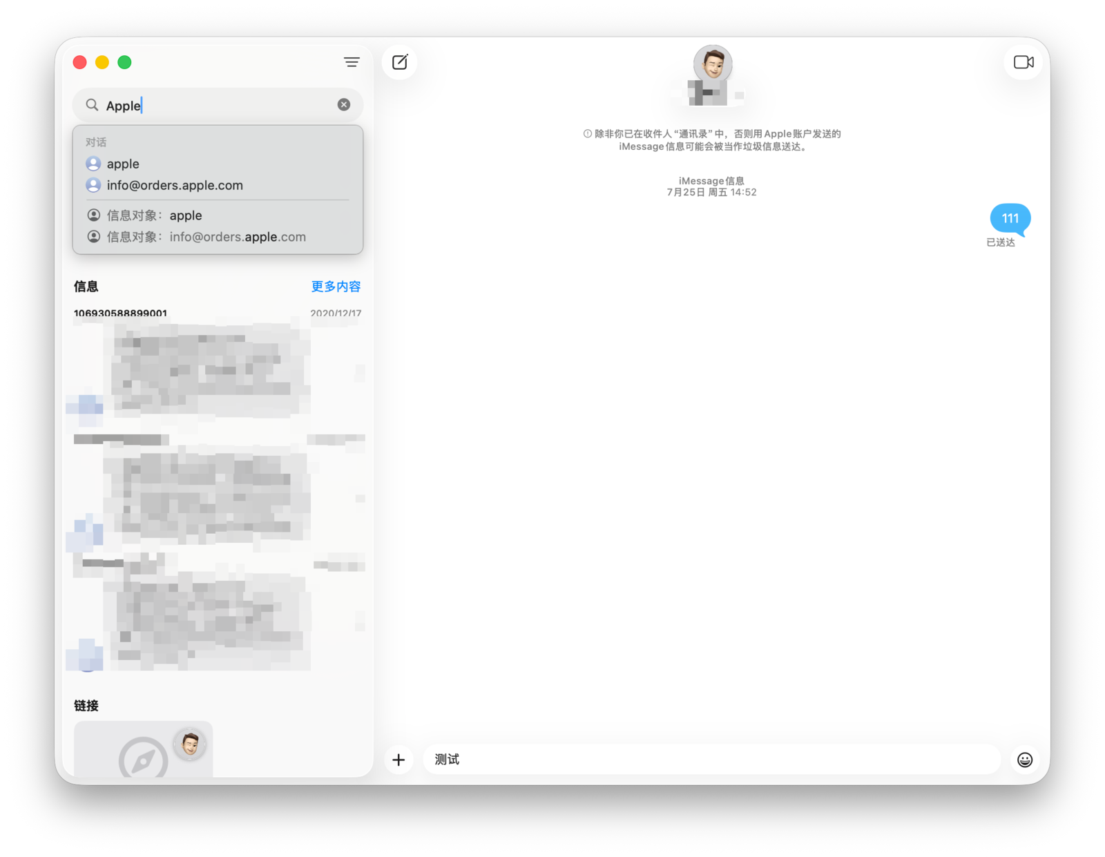 Mac 上的「信息」应用可选的收发地址主要有两类: