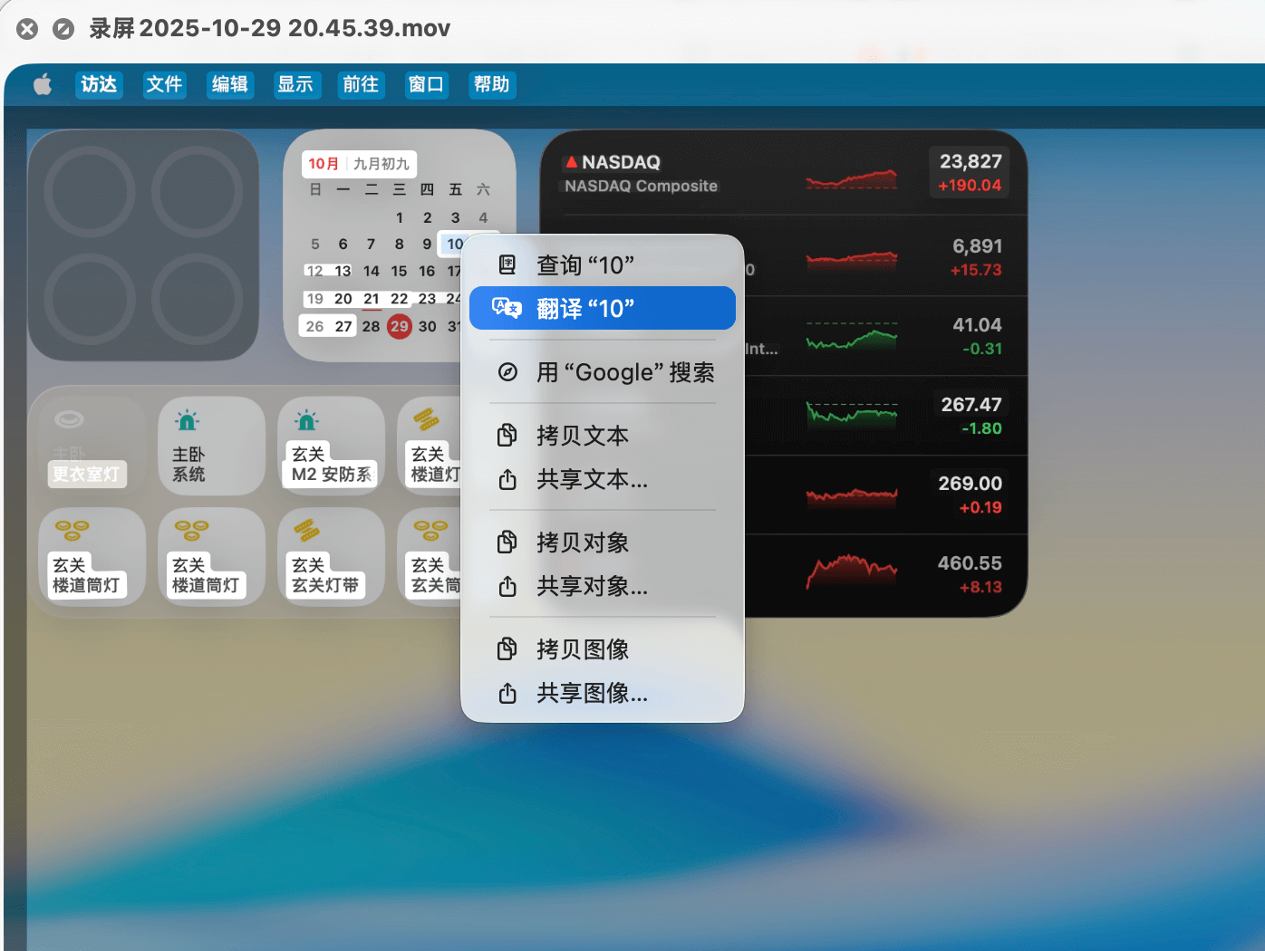 在 macOS Ventura 中,实况文本还新增了视频支持。播放视频时,只需暂停播放,你就可以在画面中选中任意文本,进行拷贝、查询或翻译等操作。